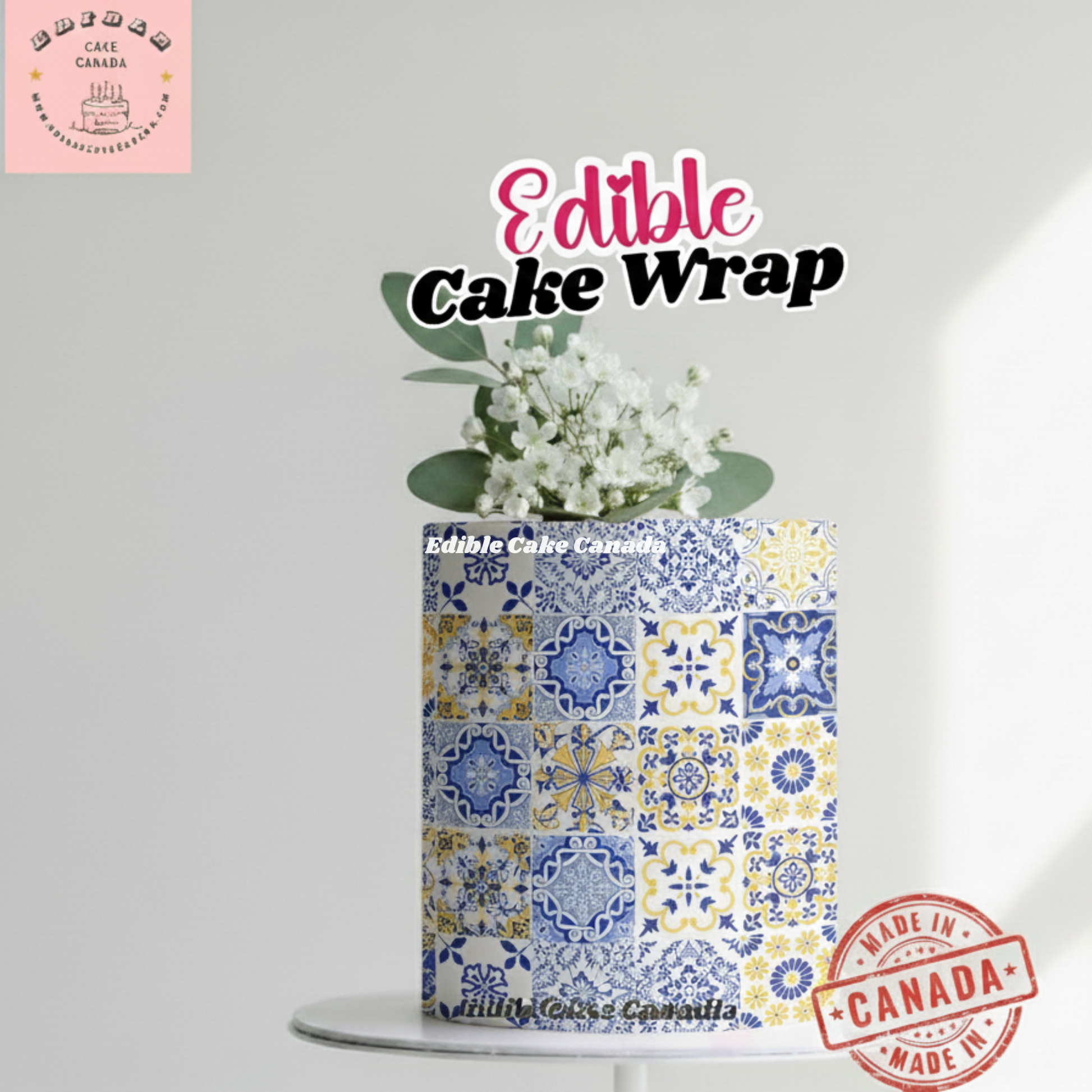 Printed on a high-quality 8" x 10" edible frosting sheet, this wrap is perfect for decorating tiered cakes, sheet cakes, or cutting into edible strips to wrap around the sides. Whether you're designing a wedding cake, birthday cake, or baby shower dessert, this Mediterranean tile pattern delivers a beautiful, handcrafted touch—completely edible!